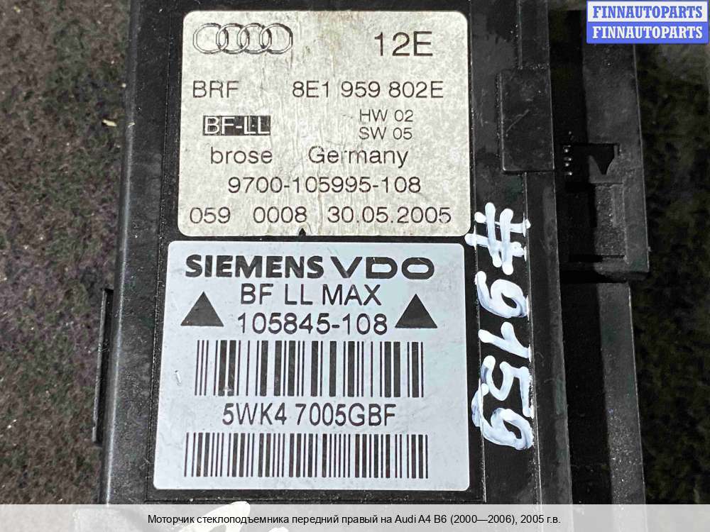 | Моторчик стеклоподъемника передний правый | Audi A4 B6 (2000—2006) |
