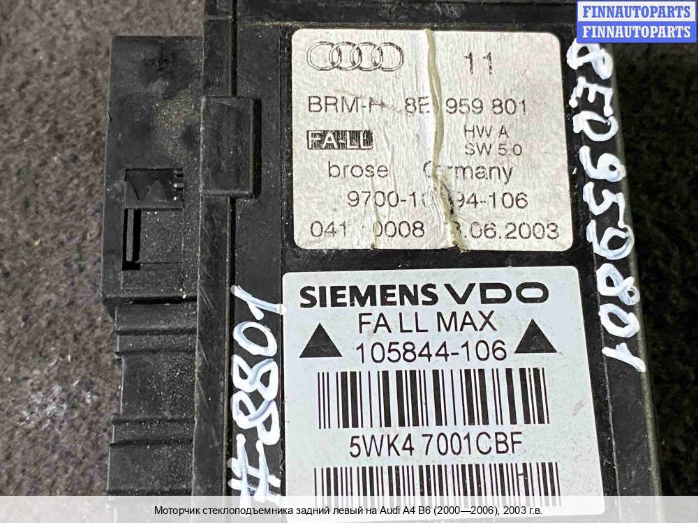 | Нижний Тагил | 2004 | 8E0837461, Внимание! Запчасть разукомплектована. Сняты запчасти: Моторчик стеклоподъемника передний левый | |||