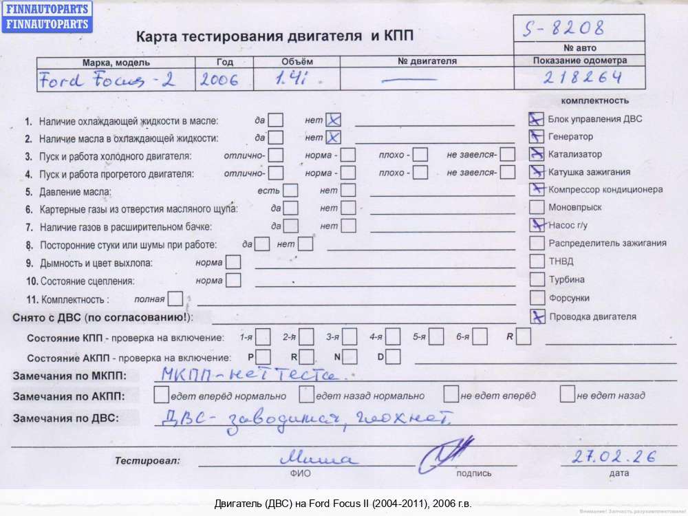 2008; Бензин; 1.6; SHDA, SHDC, Инжектор; Хетчбэк (5 дв.); ; синий; 2008, 1.6л, Бензин, Инжектор, SHDA, SHDC, SHDA8R82071, 1472848, 7M5G6006XA, Хэтчбэк 5 дв., синий, Фото не актуально, с запчасти отделены: Генератор, Компрессор кондиционера, Насос гидроусилителя руля (ГУР), Коллектор впускной, Заслонка дроссельная, Катушка зажигания, SHDA8R82071 | - | С, прокручивается , состояние ГРМ - нормально, поддон - нормально , клапанная крышка - нормально , эмульсия - нет , маховик 1м + диск + корзина,