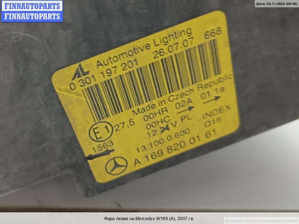 фара левая | MERCEDES BENZ A-CLASS W169 |